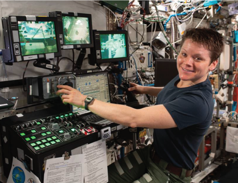2. Robotic Arm Assisted EVA Operator Model: This model assessed the mental workload of a crewmember operating a robotic arm (see Figure 3) in both manual and automated control modes on a Mars transit vehicle. The model results indicate that two crewmembers may be necessary to mitigate unacceptably high workload during manual robotic arm operations. Furthermore, consistent with the scientific literature, the model predicted that stressors like sleep debt increase mental workload and degrade performance, extending task completion times. This highlights the importance of accounting for crew well-being in crew-size determinations.